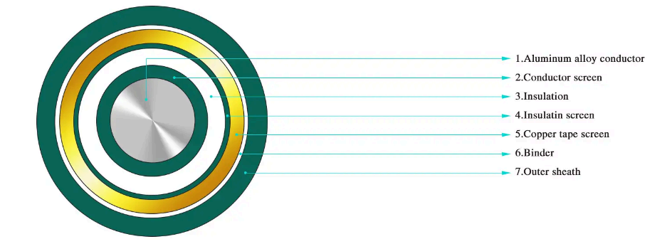·Jednožilový XLPE izolační napájecí kabel pro jmenovité napětí od 3,6/6kV~26/35kV